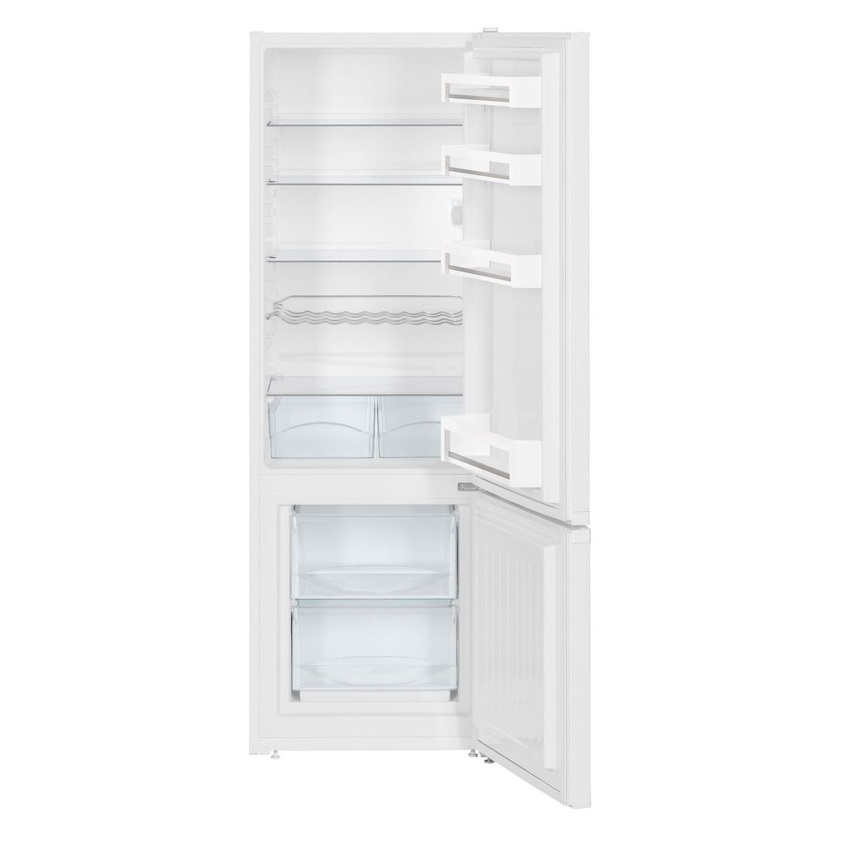 - Półki na drzwiach: Półka na butelki i konserwy
