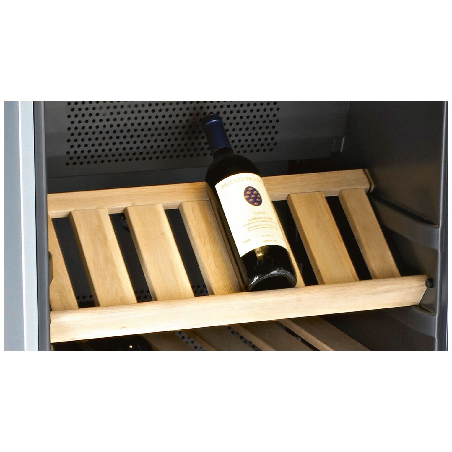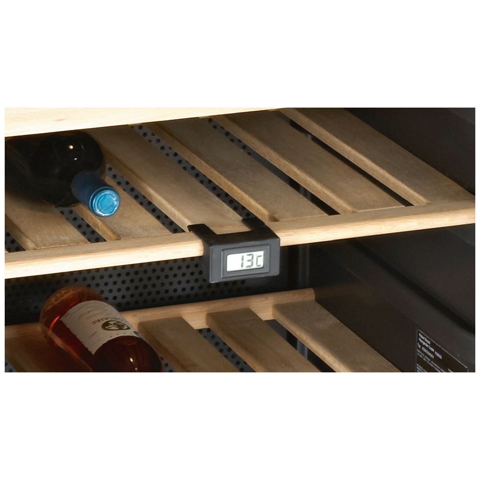 cyfrowy, 2 strefy regulacji temperatury, płynna regulacja temperatury w obydwu strefach w zakresie +5°C do 22°C, 6 półek na butelki w tym półka do prezentacji butelek,