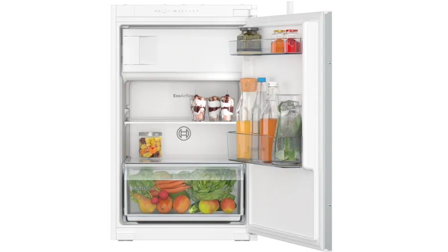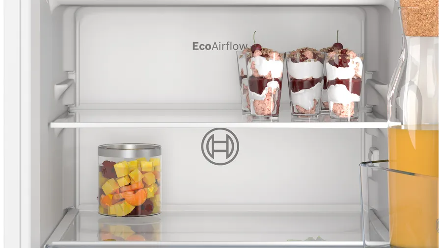 Chłodziarka KIL22NSE0 Bosch Serie 2 to wysokiej jakości chłodziarka do zabudowy, zapewniająca efektywność energetyczną na poziomie klasy E. Została zaprojektowana z myślą o optymalnej cyrkulacji powietrza i stałej temperaturze w komorze chłodzenia, co pozwala zachować świeżość produktów na dłużej.