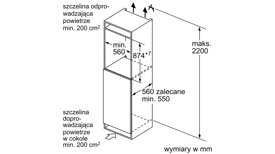 | Wymagana przestrzeń instalacyjna (WxSxG): | 880 x 560 x 550 mm |