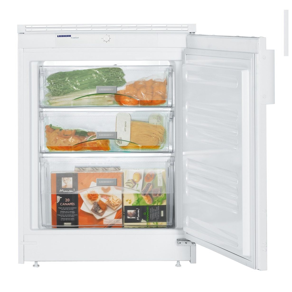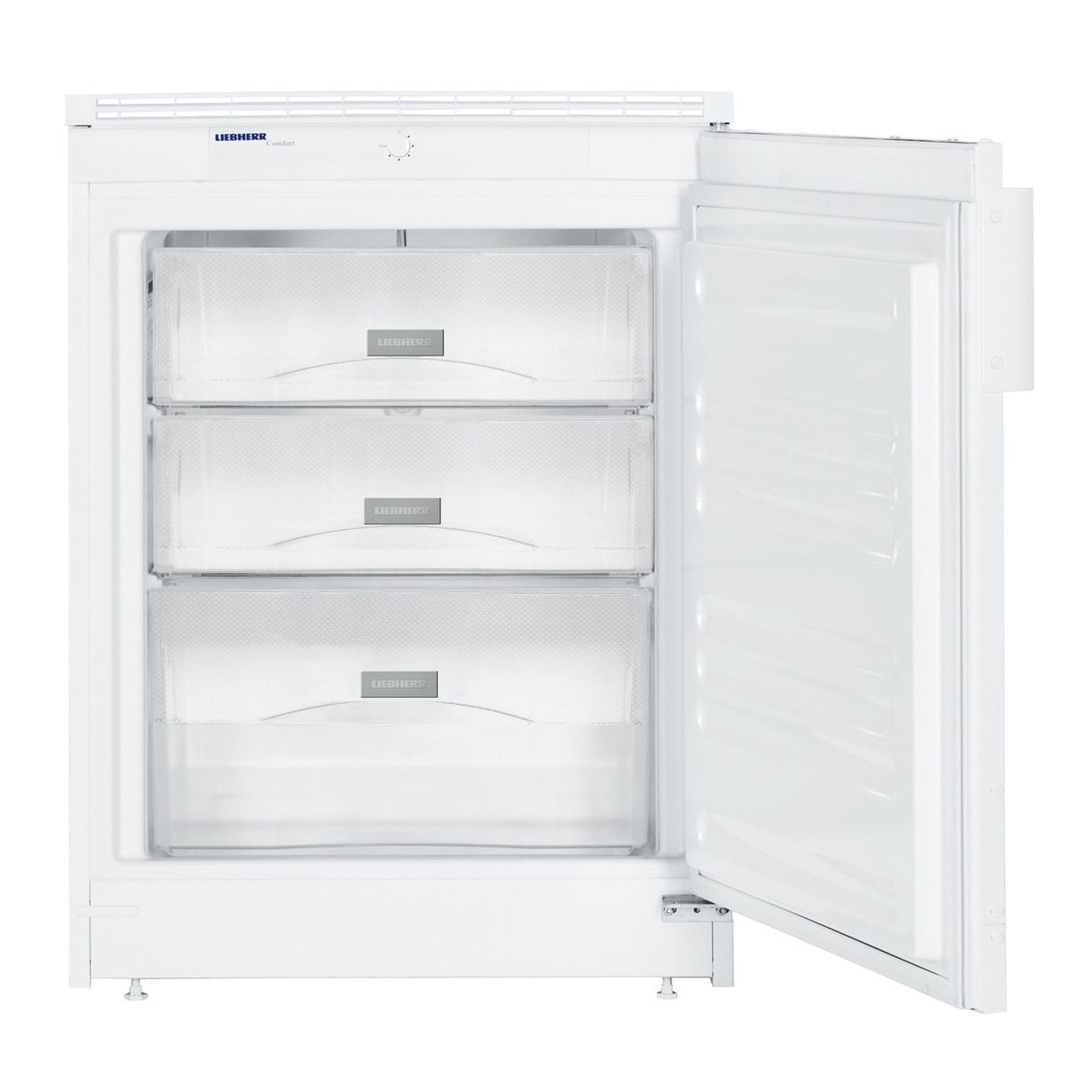 - FrostSafe: zamknięte ze wszystkich stron półki wysuwane, przezroczyste
