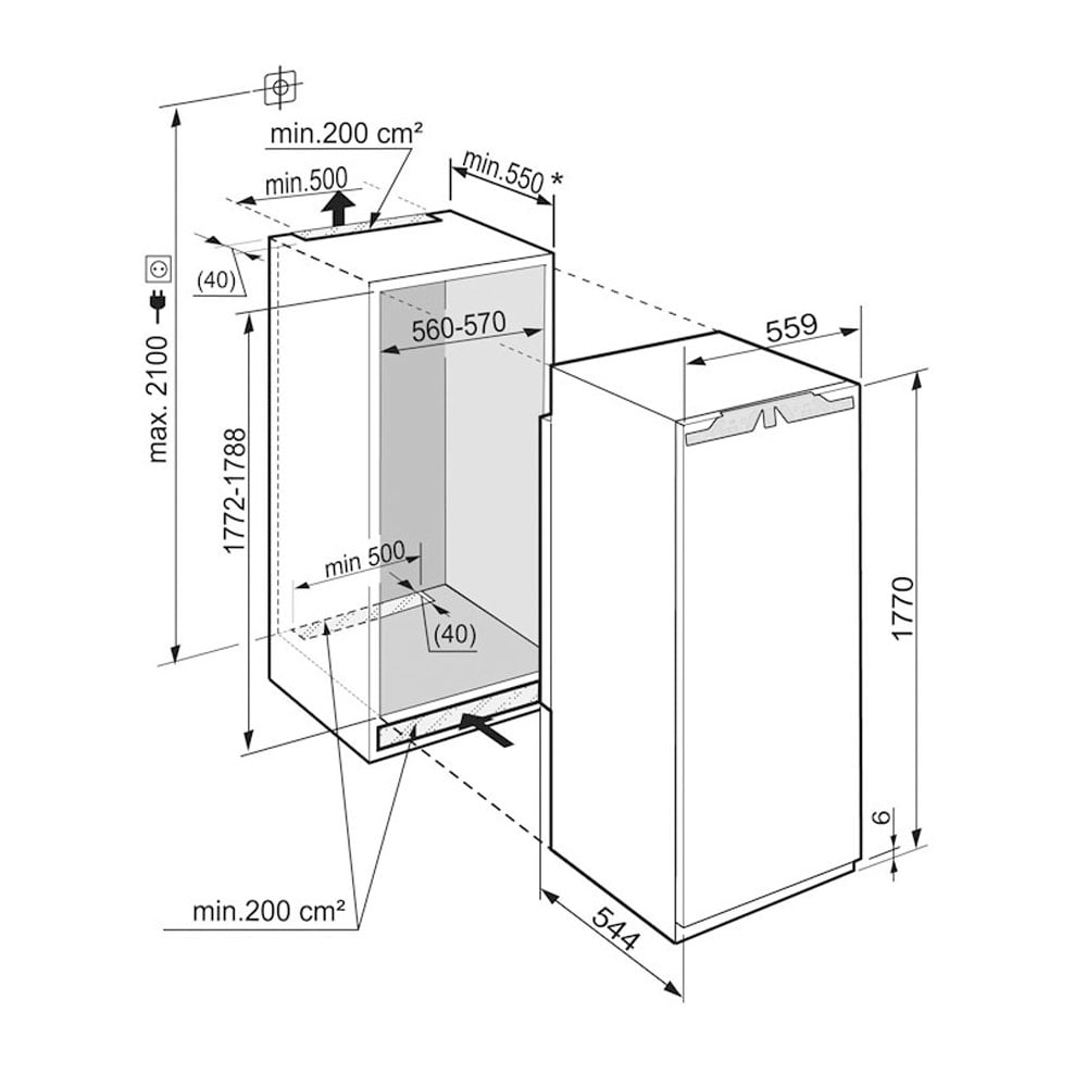 Wymiary wnęki wysokość / szerokość / głębokość 177,2 – 178,8 / 56 – 57 / 55,0 cm