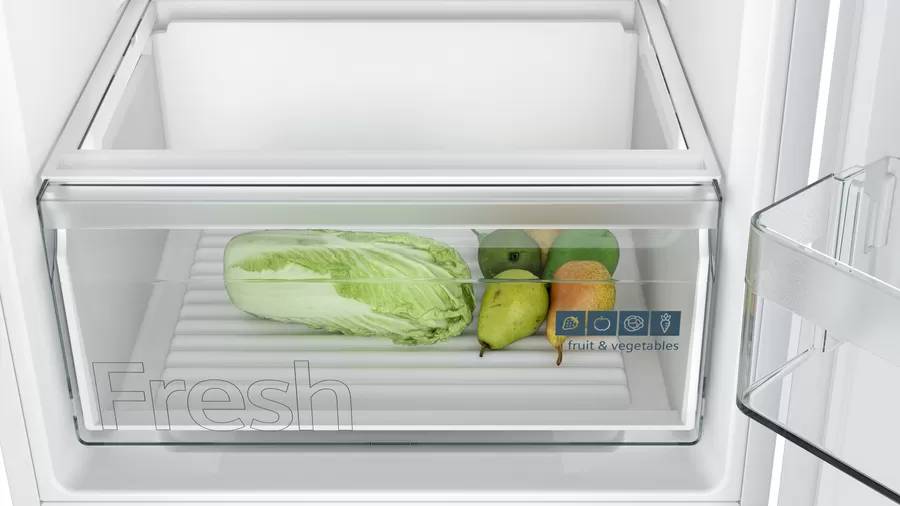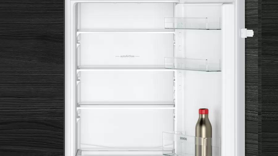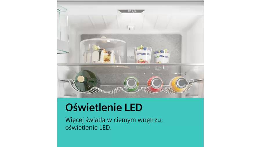 Chłodziarko-zamrażarka KI86VNSE0 wyposażona jest w zaawansowany system autoAirflow, który równomiernie rozprowadza chłodne powietrze, utrzymując odpowiednie temperatury we wnętrzu urządzenia i przedłużając świeżość przechowywanych produktów. Jasne i równomierne oświetlenie LED wewnątrz chłodziarki ułatwia szybkie sprawdzenie zawartości i organizację produktów.