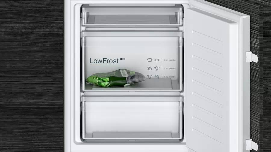 Chłodziarko-zamrażarka KI86VNSE0 Siemens to zaawansowane urządzenie, które zapewnia doskonałą efektywność energetyczną klasy E. Dzięki swojej innowacyjnej technologii lowFrost, ogranicza oblodzenie, co skutkuje szybszym i bardziej wydajnym rozmrażaniem. Pozwala to zachować świeżość i chrupkość owoców oraz warzyw w pojemnym Fresh Boxie, który posiada falowane dno, zapewniające odpowiednią wilgotność.