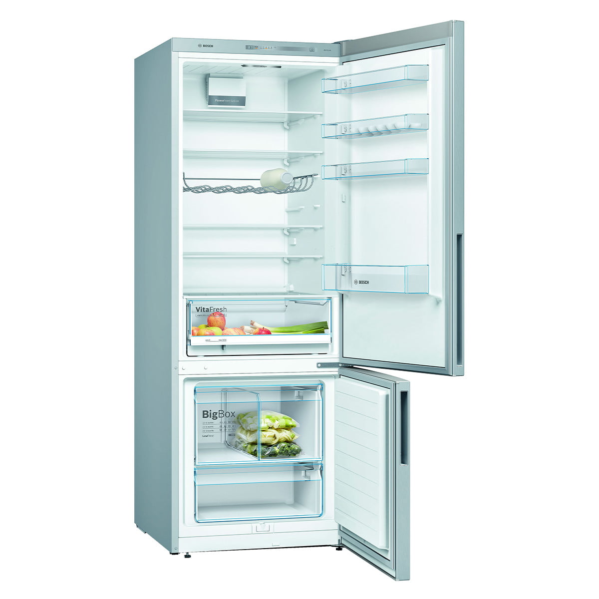 Chłodziarko-zamrażarka wolnostojąca Serie|4 z zamrażarką w dolnej części pozwoli zachować świeżość produktów. Wnętrze urządzenia jest gotowe na większe zapasy dzięki pojemności XXL. Dzięki optymalnym warunkom przechowywania FreshSense żywność zachowuje idealną konsystencję. Trwałe, energooszczędne diody LED automatycznie oświetlają wnętrze wspaniałym białym światłem. Szuflada Big Box zapewni wystarczająco dużo miejsca nawet na duże porcje mrożonej żywności. Zamrażarka, która praktycznie rozmraża się sama dzięki innowacyjnemu systemowi LowFrost.