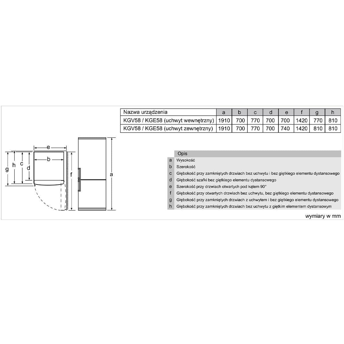 CHŁODZIARKO-ZAMRAŻARKA, ZAMRAŻARKA NA DOLE SERIE 4 KGV58VLEAS
