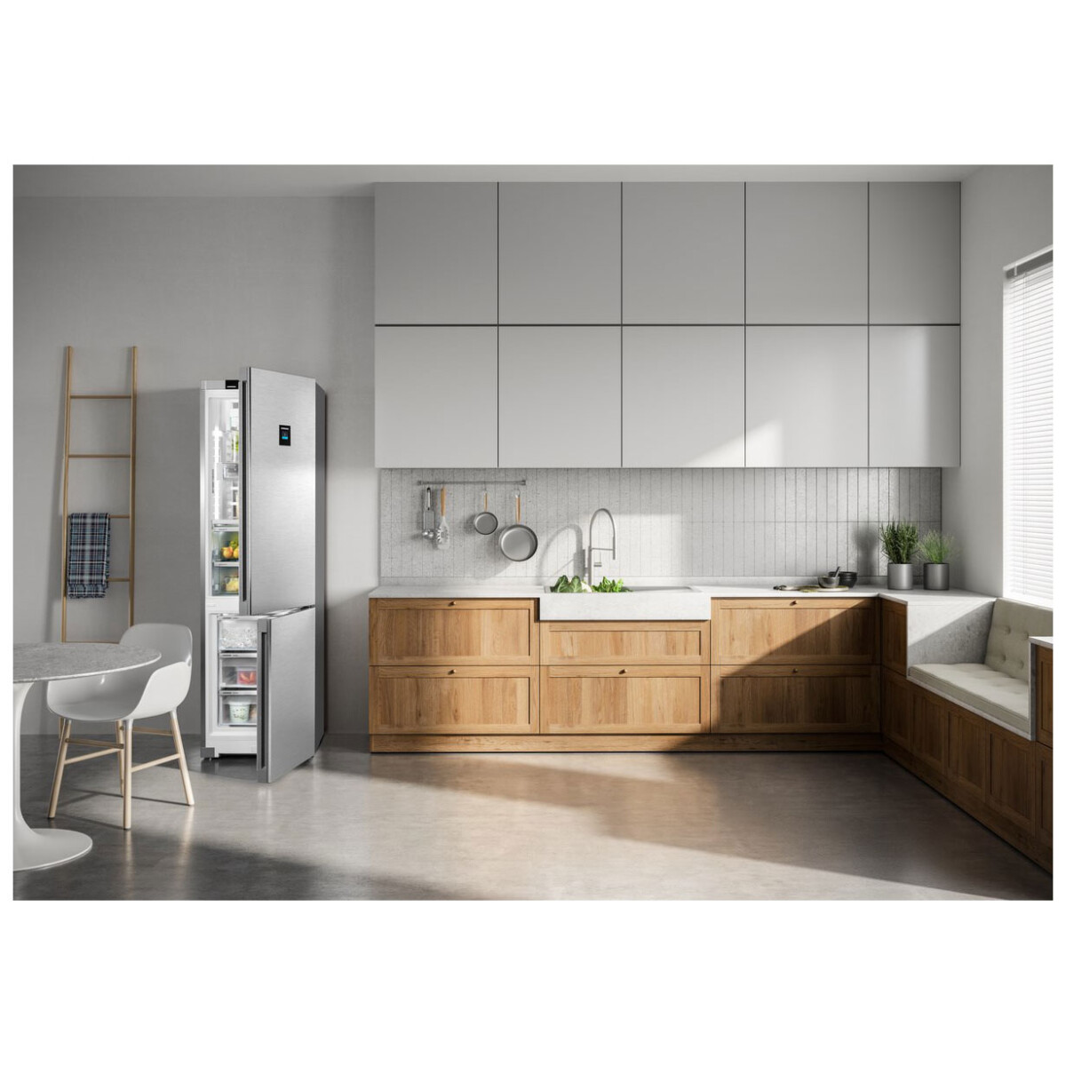 Chłodziarko-zamrażarka CBNstb 579i Plus to nowoczesne urządzenie, które zapewnia optymalne warunki przechowywania żywności. Dzięki technologii BioFresh Professional, produkty zachowują świeżość, aromat i wartości odżywcze nawet do trzech razy dłużej niż w tradycyjnych lodówkach. Technologia NoFrost zapobiega tworzeniu się szronu i lodu w zamrażarce, co ułatwia czyszczenie i oszczędza energię. Urządzenie posiada również funkcję IceMaker, która automatycznie produkuje kostki lodu i zasila je zimną wodą z sieci. Chłodziarko-zamrażarka CBNstb 579i Plus ma elegancki design i wysoką jakość wykonania. Jest wyposażona w intuicyjny panel dotykowy, który umożliwia regulację temperatury i innych parametrów pracy. Urządzenie ma pojemność 362 litrów i niski poziom hałasu 33 dB. Jest to idealne rozwiązanie dla osób ceniących sobie komfort, funkcjonalność i estetykę.