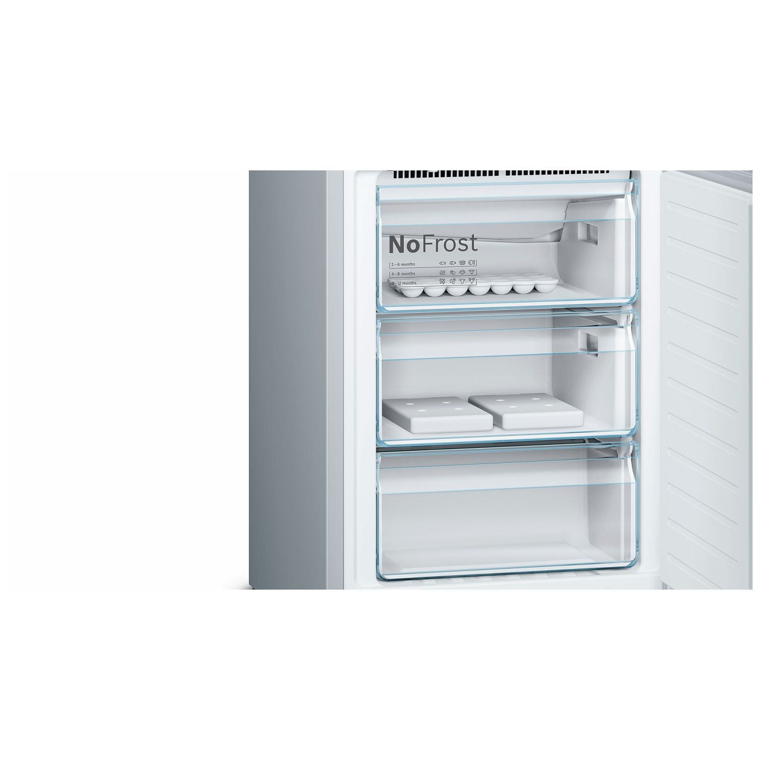 Home Connect ready – adapter do nabycia w sklepie serwisowym Pojemność 343l (256+87), W203xS60xG66cm, klasa efektywności energ. A+++, 180 kWh/rok, NoFrost, automatyczne odszranianie w chłodziarce i zamrażarce, elektroniczna regulacja temperatury, wyświetlacz cyfrowy LCD Touch Control zintegrowany w drzwiach. Chłodziarka: Multi Airflow, AirFreshFilter – aktywny filtr węglowy, oświetlenie LED typu spotlight i boczne, superchłodzenie, 4 szklane półki w tym 3 o regulowanej wysokości, stelaż na butelki, zamykana górna półka na drzwiach, strefa świeżości VitaFresh pro <> 0 °C: szuflada na warzywa i owoce z regulacją wilgotności oraz szuflada na mięso i ryby, oddzielne sterowanie temperaturą w strefie VitaFresh na zewnętrznym wyświetlaczu, alarm otwartych drzwi. Zamrażarka ****: 3 szuflady, supermrożenie, alarm wzrostu temperatury, zdolność zamrażania 14kg/24h, kolor drzwi: stal szlachetna, powłoka Antifingerprint na drzwiach.