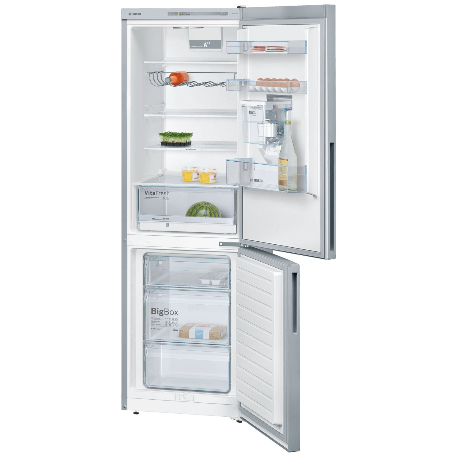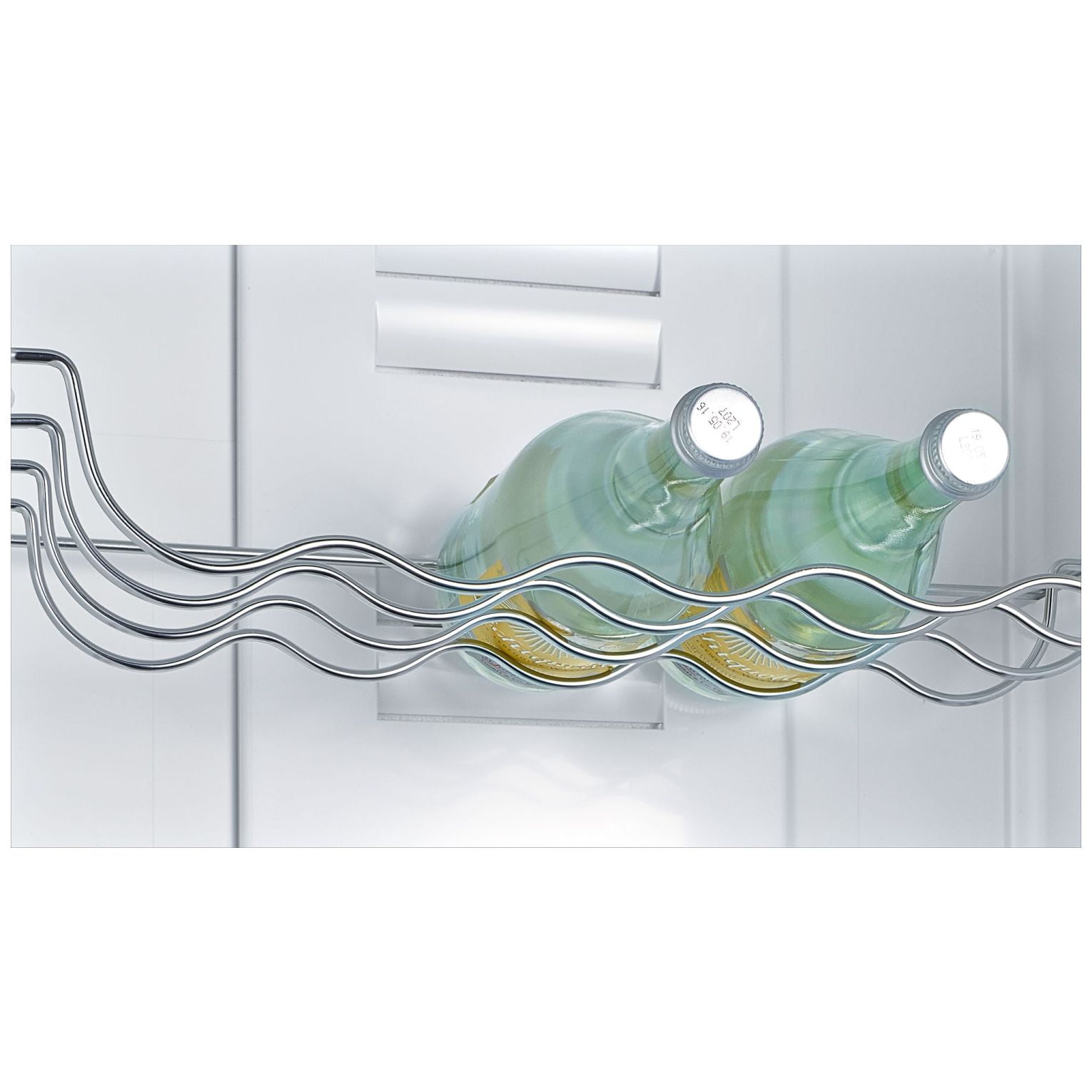 Pojemność 302l (214+88), W186xS60xG65cm, zamrażarka ****, klasa efektywności energ. A++, 223 kWh/rok, elektroniczna regulacja temperatury TouchControl, wyświetlacz cyfrowy, 4 szklane półki, chromowany stelaż na butelki, szuflada VitaFresh z regulacją wilgotności, komora VitaFresh <>0°, zamykana górna półka na drzwiach, automatyczne odszranianie w chłodziarce, superchłodzenie, oświetlenie LED, 3 szuflady w zamrażarce w tym BigBox, technologia Low Frost, supermrożenie, zdolność zamrażania 12kg/24h, kolor drzwi: stal szlachetna, powłoka Antifingerprint na drzwiach.
