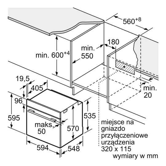 – Wymiary niszy (WxSxG): 585 mm – 595 mm x 560 mm – 568
