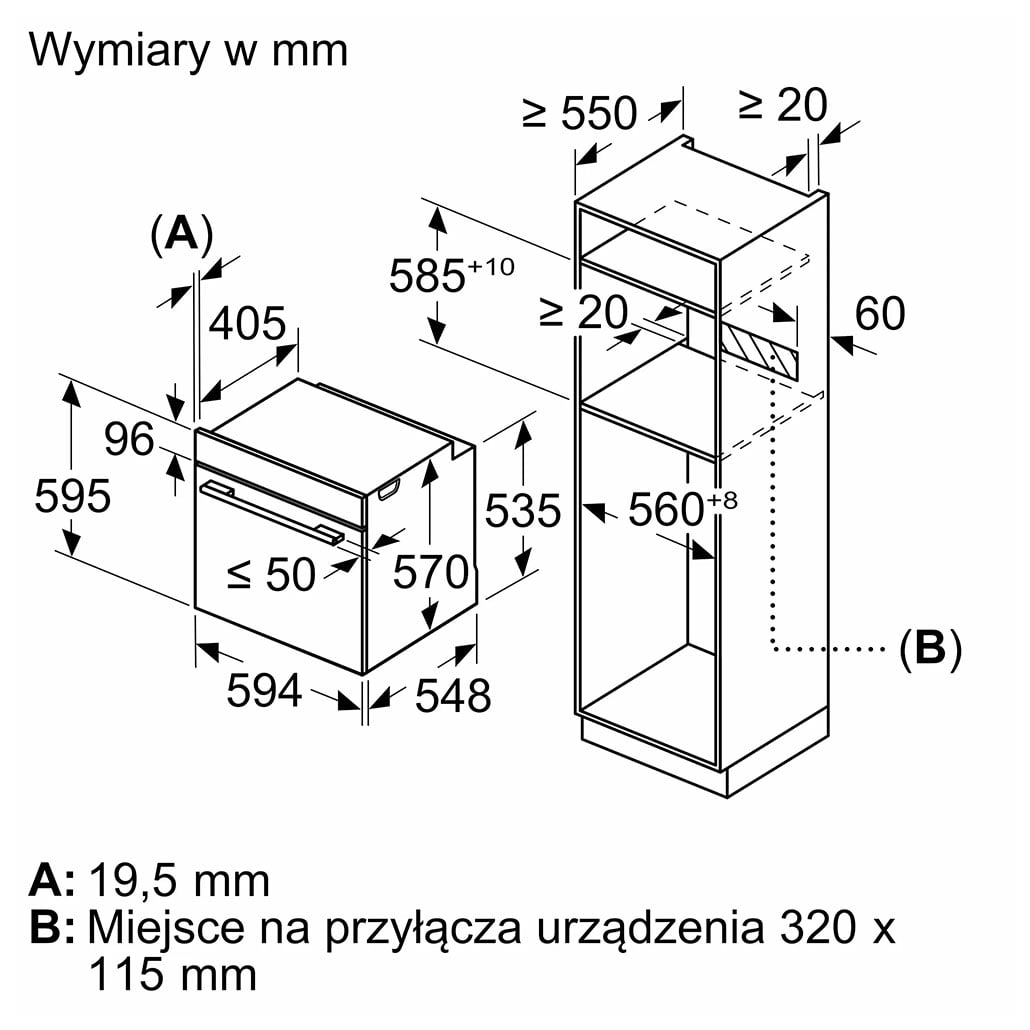 Wymagana przestrzeń instalacyjna (WxSxG) : 585-595 x 560-568 x 550 mm
