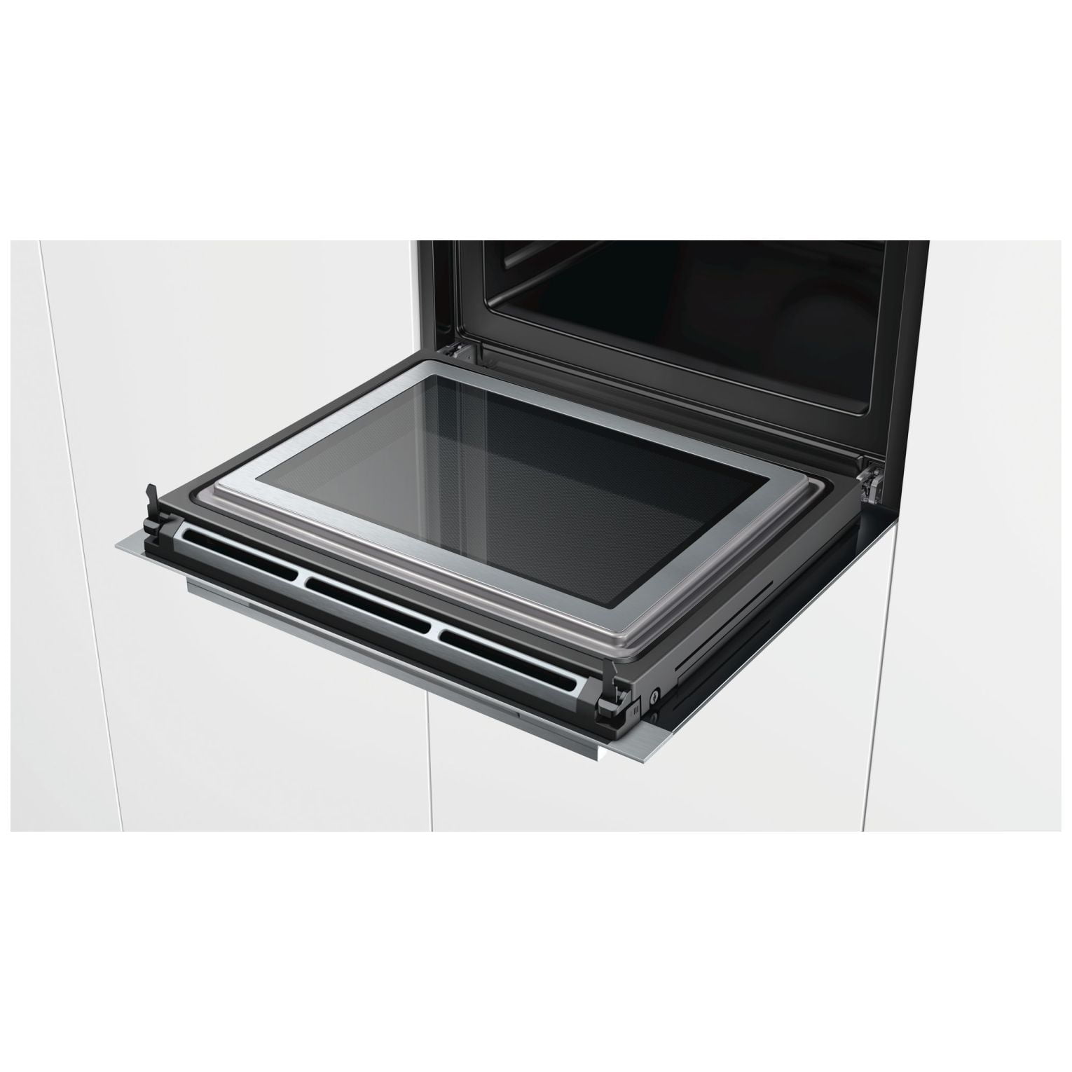 Piekarnik do zabudowy iQ700 z funkcją mikrofali to niezawodne urządzenie, dzięki któremu pieczywo, ziemniaki, wypieki oraz pieczeń upieką się w sam raz. Udane gotowanie w krótszym czasie jest możliwe dzięki funkcji varioSpeed łączącej funkcje grzania klasycznego i mikrofalowego. Bezwysiłkowe czyszczenie piekarnika zapewnia funkcja samoczyszczenia piekarnika activeClean®. Trzypunktowa termosonda roastingSensor Plus pozwoli uzyskać idealne efekty pieczenia. Funkcja fastPreheat szybko nagrzewa piekarnik, a coolStart przyspiesza przyrządzanie dań mrożonych poprzez eliminację wstępnego nagrzewania.