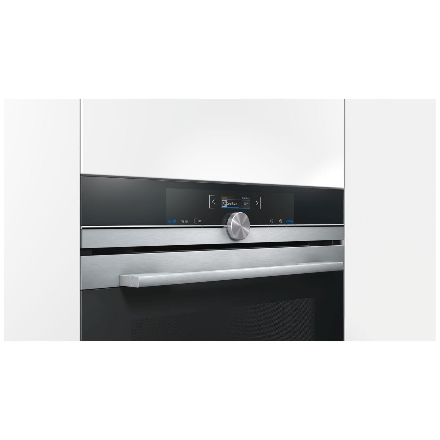 Piekarnik kompaktowy do zabudowy serii iQ700 oferuje 13 funkcji grzania, m.in. termoobieg 4D, termoobieg eco, grill z obiegiem powietrza. Klasa efektywności energetycznej A+ sprawia, że pieczenie jest bardziej efektywne. Funkcja coolStart pozwala na pieczenie zamrożonych potraw bez nagrzewania piekarnika. Czyszczenie piekarnika jest dużo łatwiejsze dzięki specjalnej powłoce czyszczącej ecoClean. Urządzenie posiada system softMove, aby miękko zamykać i otwierać drzwi. Inne użyteczne funkcje to: automatyczna propozycja temperatury, blokada dziecięca czy też oświetlenie halogenowe wnętrza.