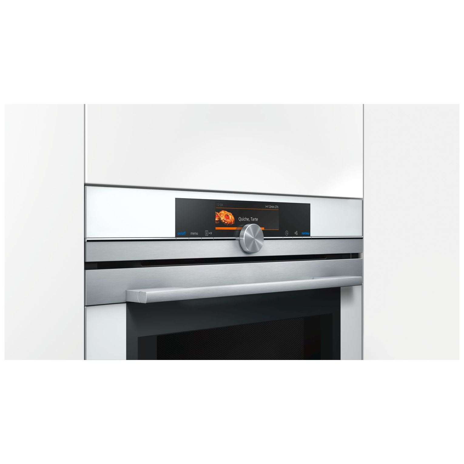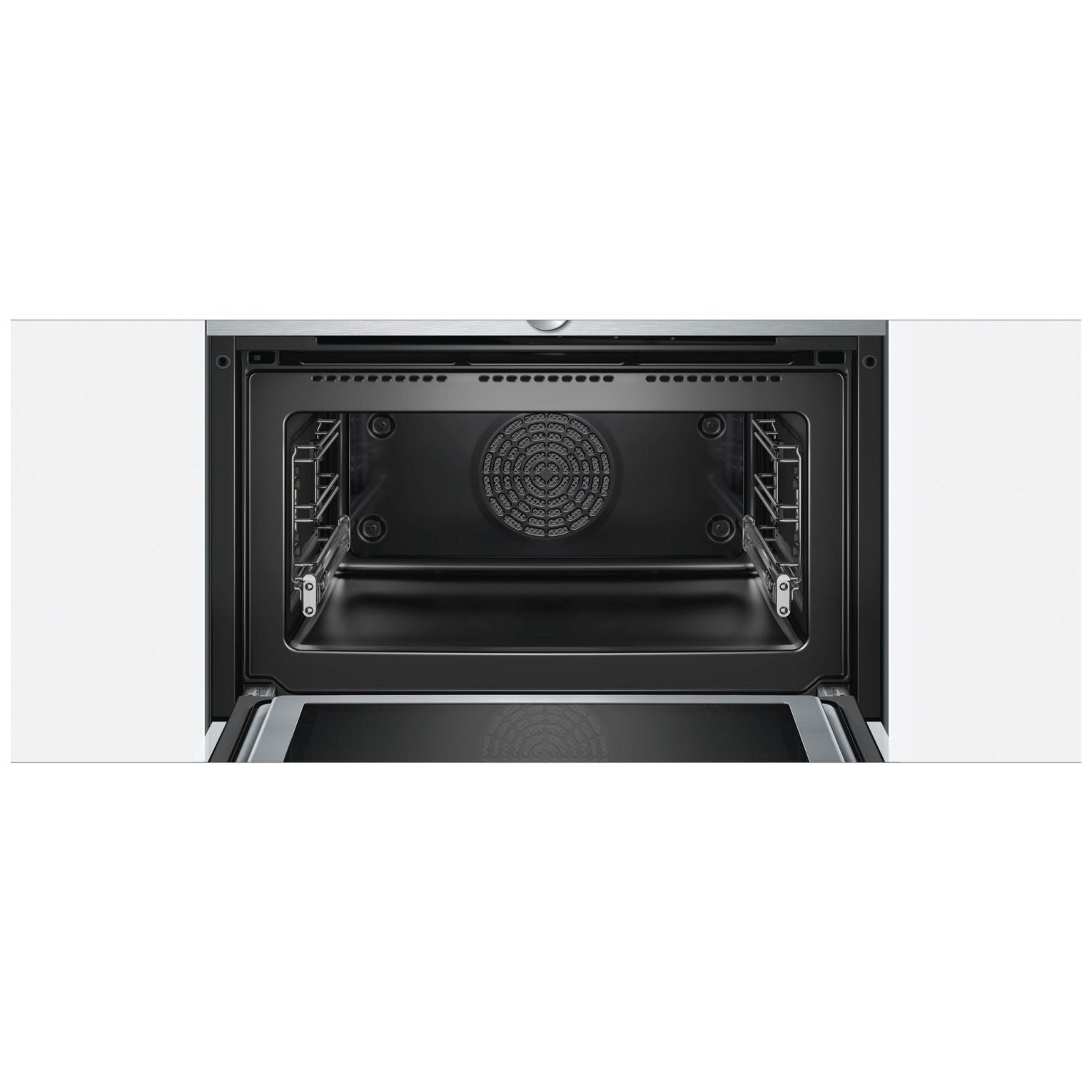 Piekarnik kompaktowy do zabudowy serii iQ700 z funkcją mikrofali to niekończące się możliwości pieczenia dzięki 15 funkcjom grzania. Piekarnik oferuje automatyczny system czyszczenia pyrolitycznego activeClean®. Termosonda Plus i bakeSensor wykrywają dokładnie ten moment, w którym potrawa jest gotowa. System wspomagający wybór potrawy cookControl Plus to gwarantowany sukces kulinarny. Kolorowy wyświetlacz graficzny TFT 5,7″ z przyciskami sensorowymi gwarantuje łatwą obsługę. Funkcja varioSpeed zapewnia do 50% szybsze przygotowywanie dań.