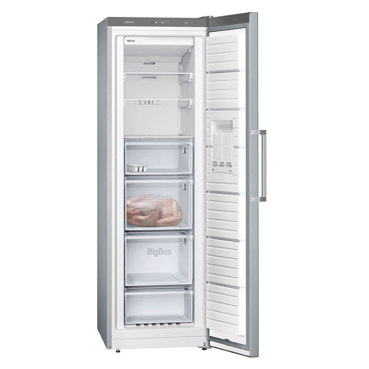 Zamrażarka wolnostojąca serii iQ300 posiada drzwi ze stali nierdzewnej, które pozostają czyste na dłużej dzięki specjalnej powłoce antiFingerprint. System multiAirflow zapewnia optymalną cyrkulację powietrz, a technologia noFrost uwalnia Twoją zamrażarkę od szronu. Przestrzeń zamrażalnika można dopasować do własnych potrzeb dzięki varioZone. Zamrażarka posiada elektroniczną regulację temperatury oraz wyświetlacz LED. System freshSense gwarantuje stałą temperaturę, dzięki inteligentnemu systemowi czujników.