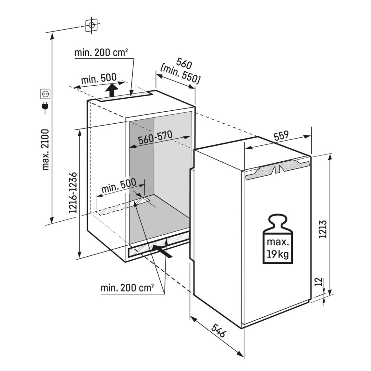 | Wymiary wnęki wysokość/szerokość/głębokość | 121,6 – 122,6 / 56 – 57 / 55,0 cm |