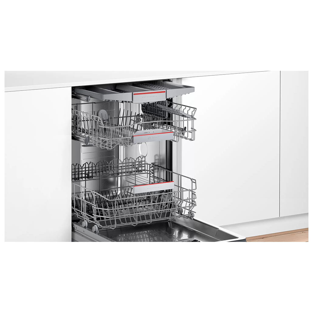 Szuflada Vario3 to dodatkowy poziom w górnej części zmywarek. To idealne miejsce na sztućce i małe akcesoria kuchenne, takie jak łyżki wazowe czy trzepaczki, a nawet filiżanki do espresso. Dodatkowy poziom zapewnia większą swobodę podczas załadunku zmywarki i więcej przestrzeni. Vario3 może zastąpić koszyk na sztućce, tworząc miejsce na więcej kompletów naczyń w dolnym koszu. Vario3 – więcej możliwości!