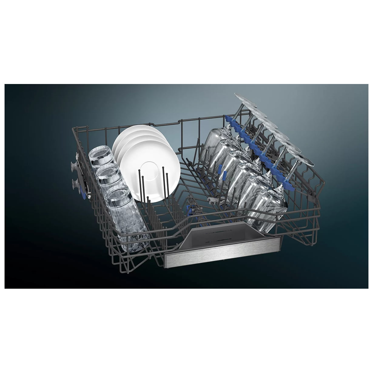 Zmywarka do zabudowy serii iQ500 o szerokości 60 cm w pełni zintegrowana to wyjątkowe urządzenie z technologią turbosuszenia Zeolith® gwarantującą szybsze i energooszczędne suszenie naczyń oraz specjalną strefą glassZone i programem dla delikatnego szkła. Kosze i szuflady flexComfort zapewniają wygodę, skuteczną ochronę szkła oraz szybkie rozmieszczenie i wyjmowanie naczyń. Zmywarka może działać do trzech razy szybciej dzięki funkcji varioSpeed Plus, którą można zdalnie aktywować za pomocą aplikacji Home Connect, nawet w trakcie cyklu zmywania.
