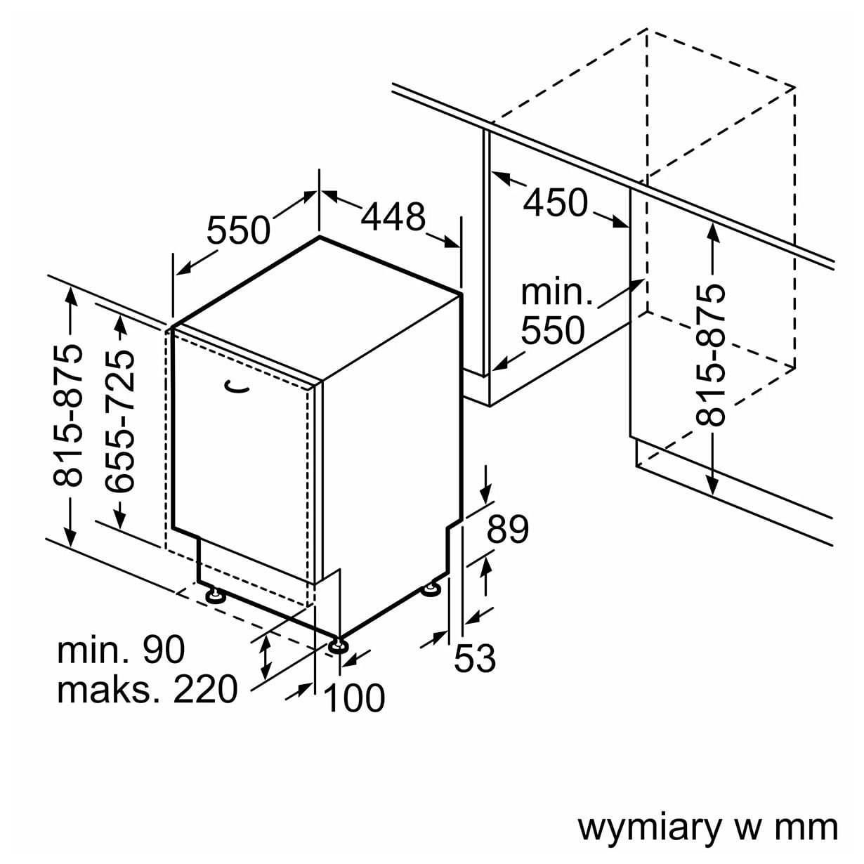 Wymagana przestrzeń instalacyjna (WxSxG): 815-875 x 450 x 550 mm