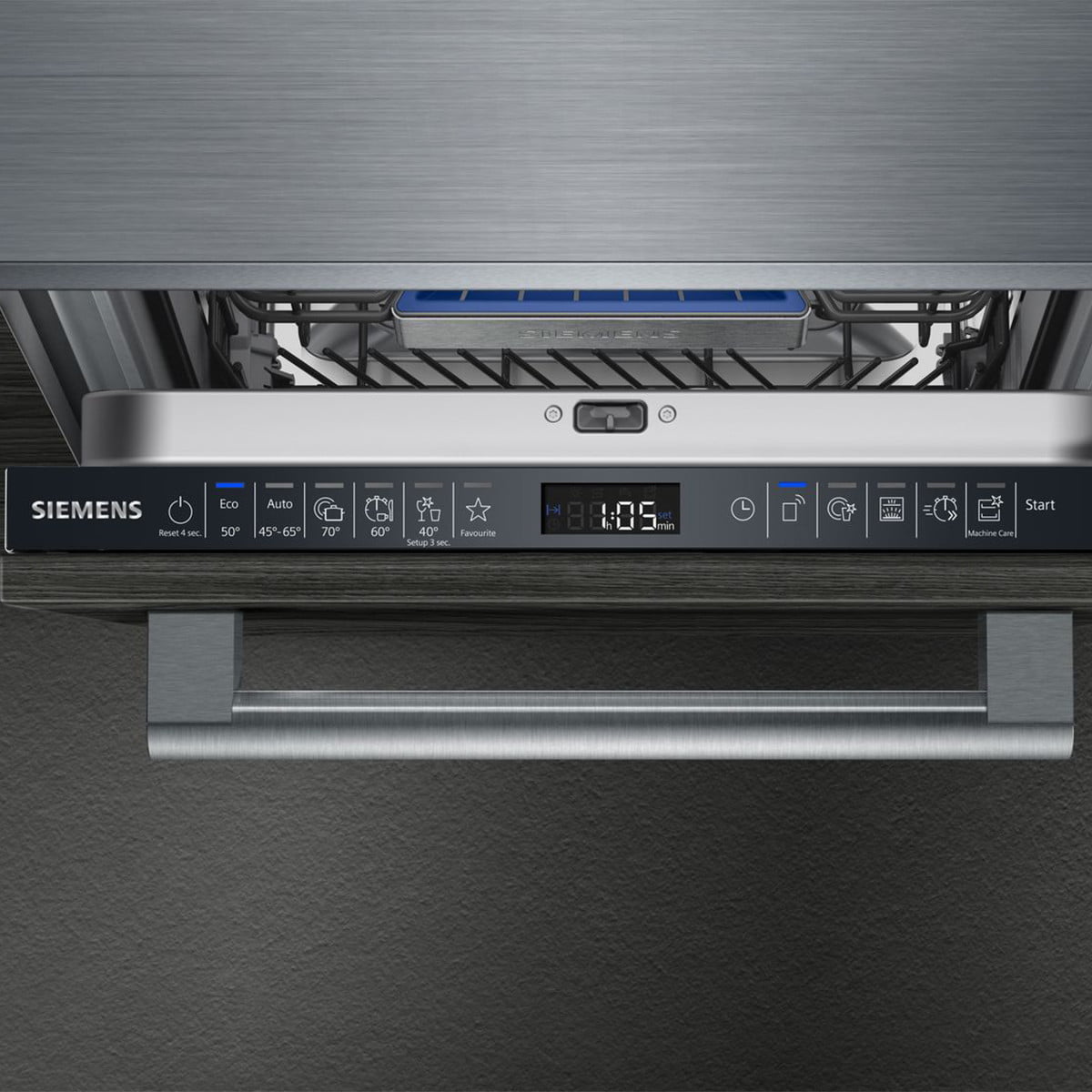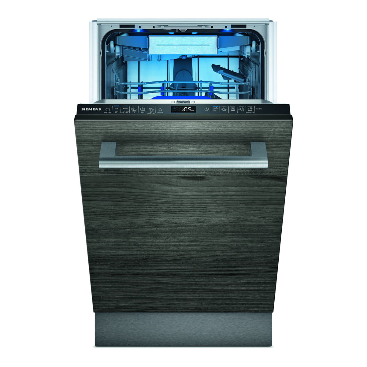 Zmywarka do zabudowy serii iQ500 o szerokości 45 cm jest praktycznie niewidoczna. Panel frontowy w pełni zintegrowanej zmywarki pasuje do Twoich szafek kuchennych. emotionLight zapewnia unikatową, zaskakującą ekspozycję szkła i naczyń we wnętrzu zmywarki – niezależnie od standardowego oświetlenia kuchni. Sterowana przez Wi-Fi zmywarka marki Siemens może być obsługiwane poprzez aplikację Home Connect. Przebieg programu zależy również od stopnia zapełnienia zmywarki. Ocenia to sensor załadunku i dozuje wodę odpowiednio do ilości mytych naczyń.