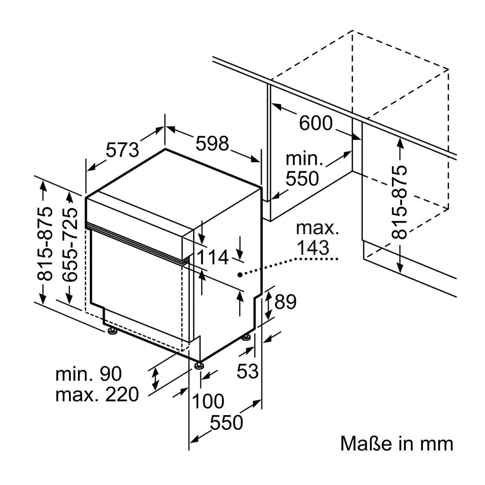 Wymagana przestrzeń instalacyjna (WxSxG): 815-875 x 600 x 550 mm