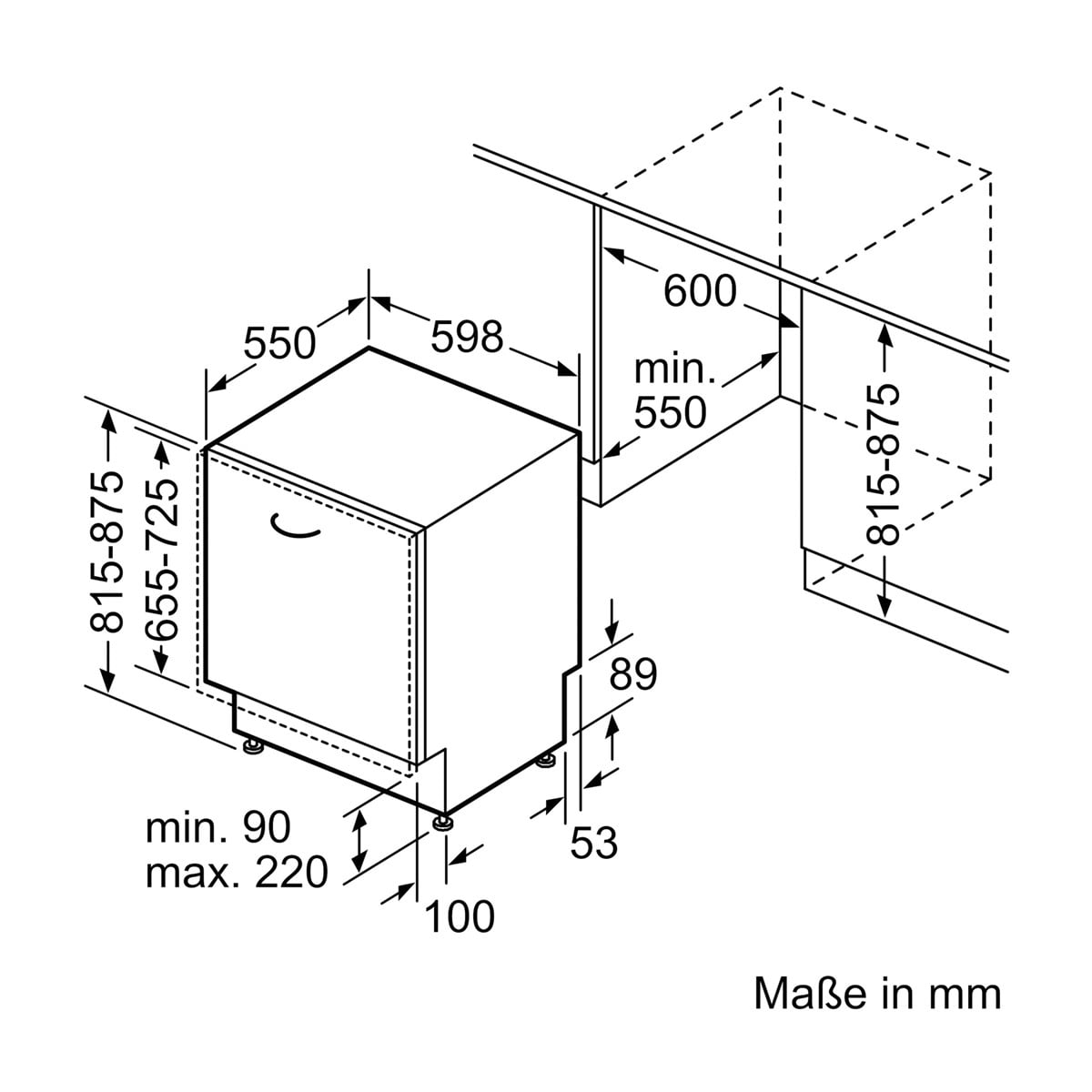 Wymagana przestrzeń instalacyjna (WxSxG): 815-875 x 600 x 550 mm