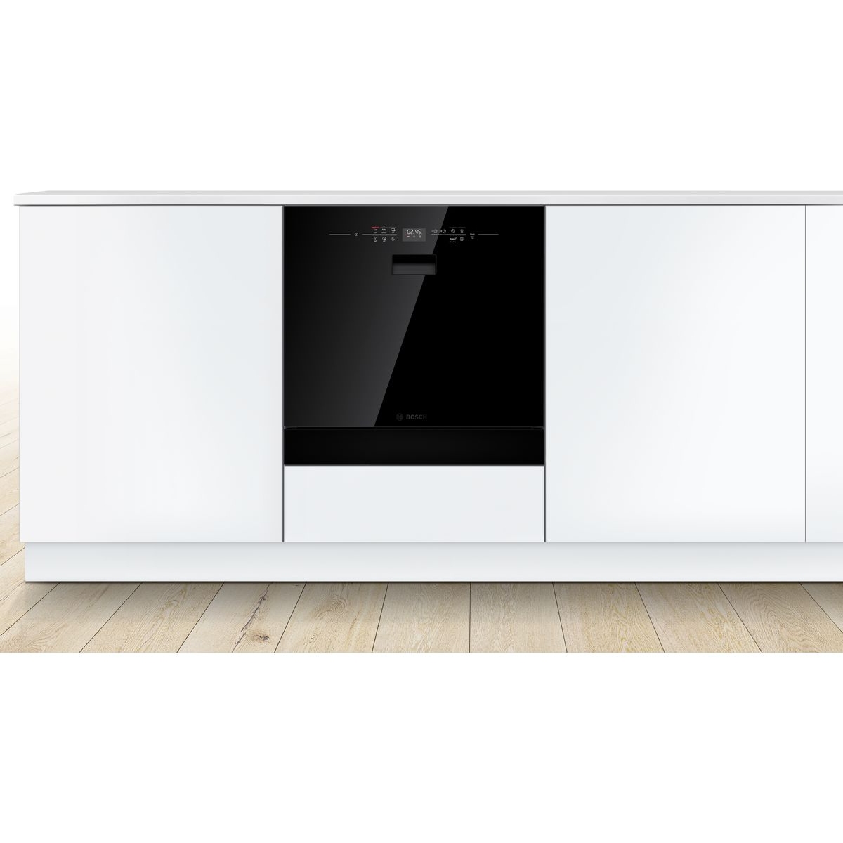 Zmywarka Bosch SCX6ITB00E może zadbać o delikatne szkło i jednocześnie chronić przed zalaniem. Dzięki funkcji ExtraDry, Twoje naczynia będą idealnie suche, nawet te trudno schnące. Program Szkło 40°C delikatnie myje szklane naczynia, zapewniając im bezpieczeństwo. Wbudowany wyświetlacz pokaże czas do zakończenia programu oraz przypomni o uzupełnieniu nabłyszczacza lub soli. A co z bezpieczeństwem? System AquaStop to dożywotnia gwarancja ochrony przed wyciekami wody. Całość napędza cichy, energooszczędny silnik EcoSilenceDrive, który zapewni długotrwałą i bezproblemową pracę.